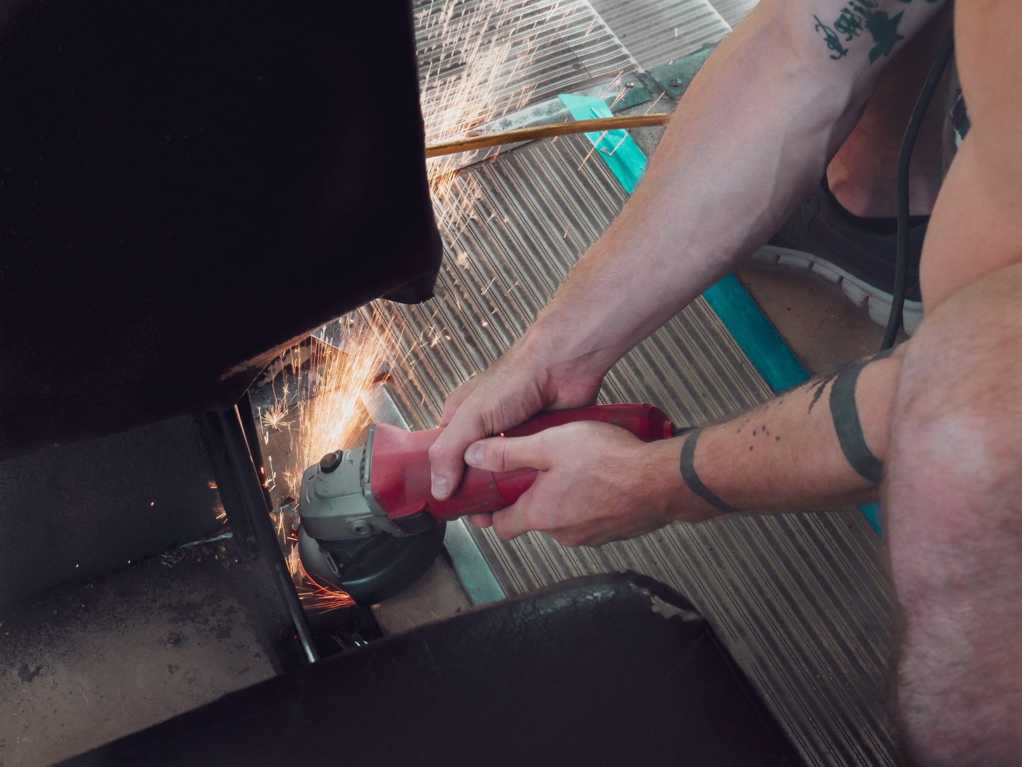 Eventually, we came to the conclusion that the only way was to use a grinder. Sadly, we’d actually known this ahead of time but had hoped to avoid it. Ultimately, we ended up wasting quite a lot of time with the whole spartan-kicking/leg-pressing attempts and used with the bloody grinder anyway.