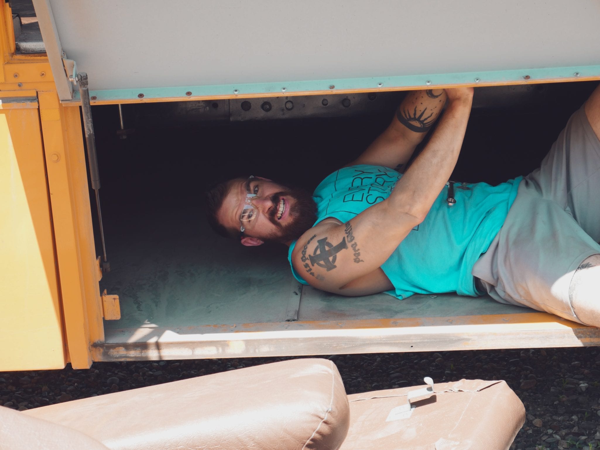 It took hours of sweaty work in the hottest part of a Montana summer to finish this job. I think this may have been the first point we had second thoughts about this whole “let’s build a skoolie” business.