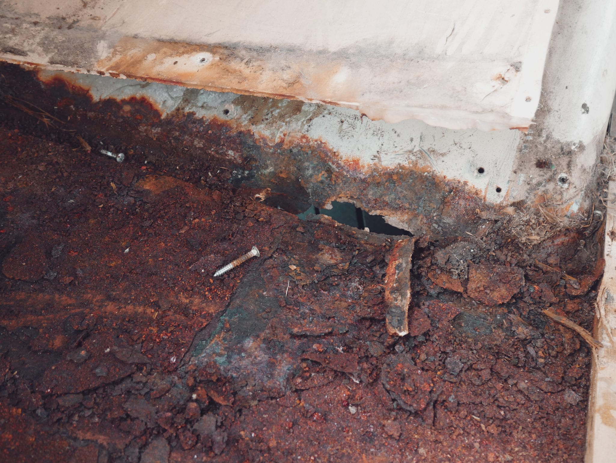 We were finally down to the metal base floor, which was, of course, rusted. We expected this, but there we some spots that were in pretty rough shape.